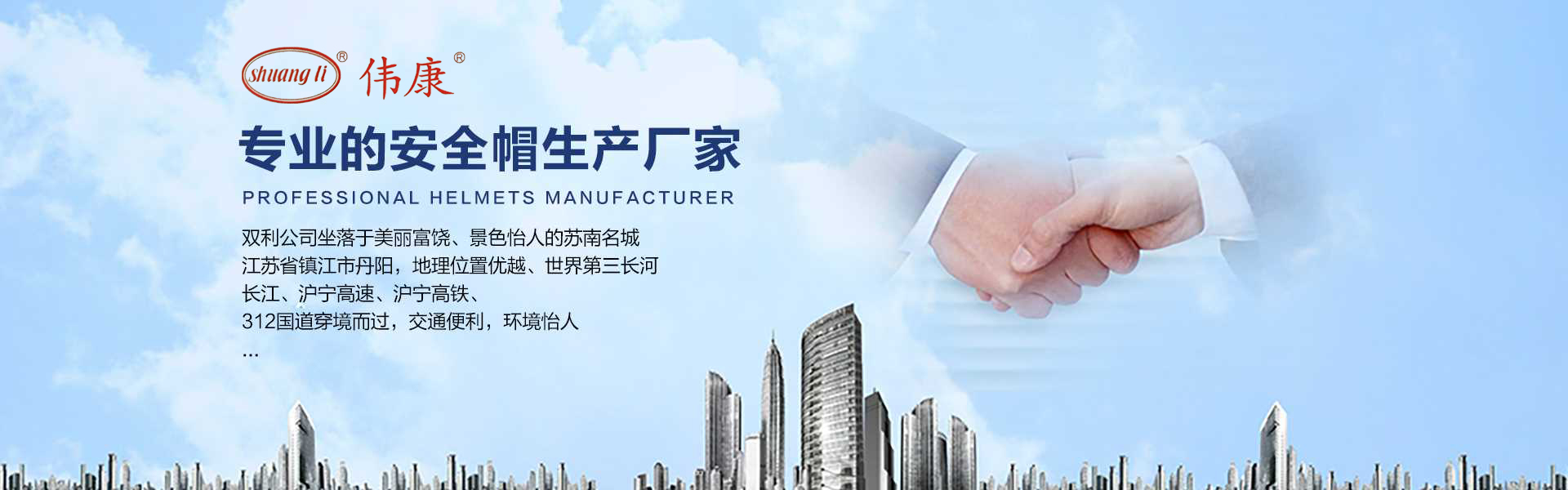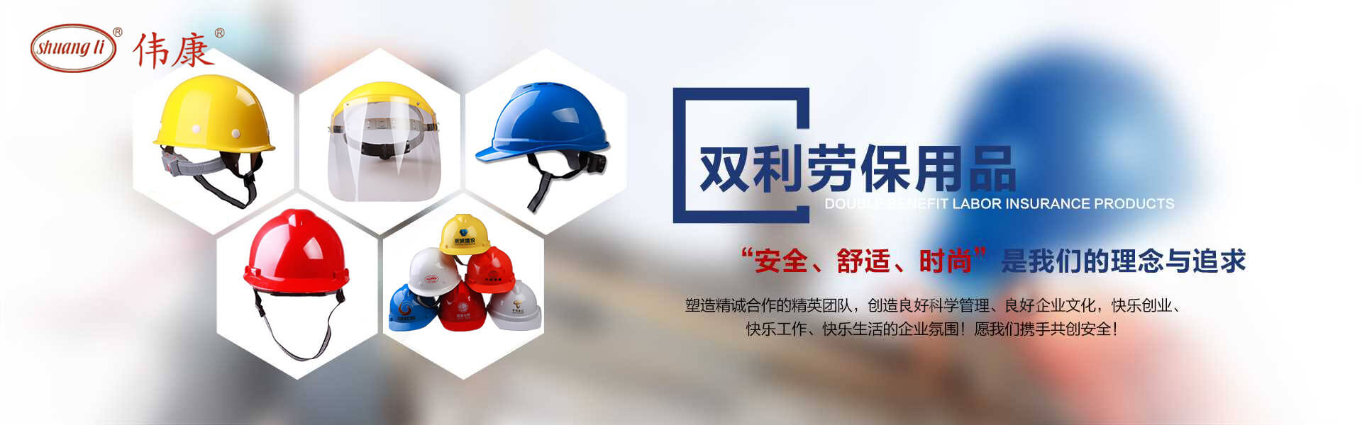專業的安全帽生產廠家-鎮江市雙利勞保用品有限公司。雙利公司坐落于美麗富饒、景色怡人的蘇南名城——江蘇省鎮江市丹陽,地理位置優越、世界第三長河——長江、滬寧高速、滬寧高鐵、312國道穿境而過,交通便利,環境怡人。鎮江市雙利勞保用品有限公司是鎮江市第一家創辦的專業生產安全帽的生產商,并申請擁有自己的品牌:shuangli牌和偉康牌,立足致力于安全帽研究,從原料入手研發出韌性更強、抗沖力更高的特點。公司根據實際運行需要建立高效、務實、有序的組織機構,實現現代化公司管理。同時公司具備專業完善的生產設備和成熟的安全帽生產工藝及先進的檢測儀器,為產品的質量奠定了堅實的基礎,各項技術指標均達到國家《GB2811-2019》《安全帽》標準。產品廣泛適用于建筑、林業、石油、石化、造船、港口、冶金等行業。 “安全、舒適、時尚”是我們的理念與追求,塑造精誠合作的精英團隊,創造科學管理、良好的企業文化,快樂創業、快樂工作、快樂生活的企業氛圍!愿我們攜手共創安全!